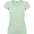 Camiseta de mujer con manga corta, escote en cuello de pico y acabados en ribete acanalado. Corte entallado con costuras laterales.